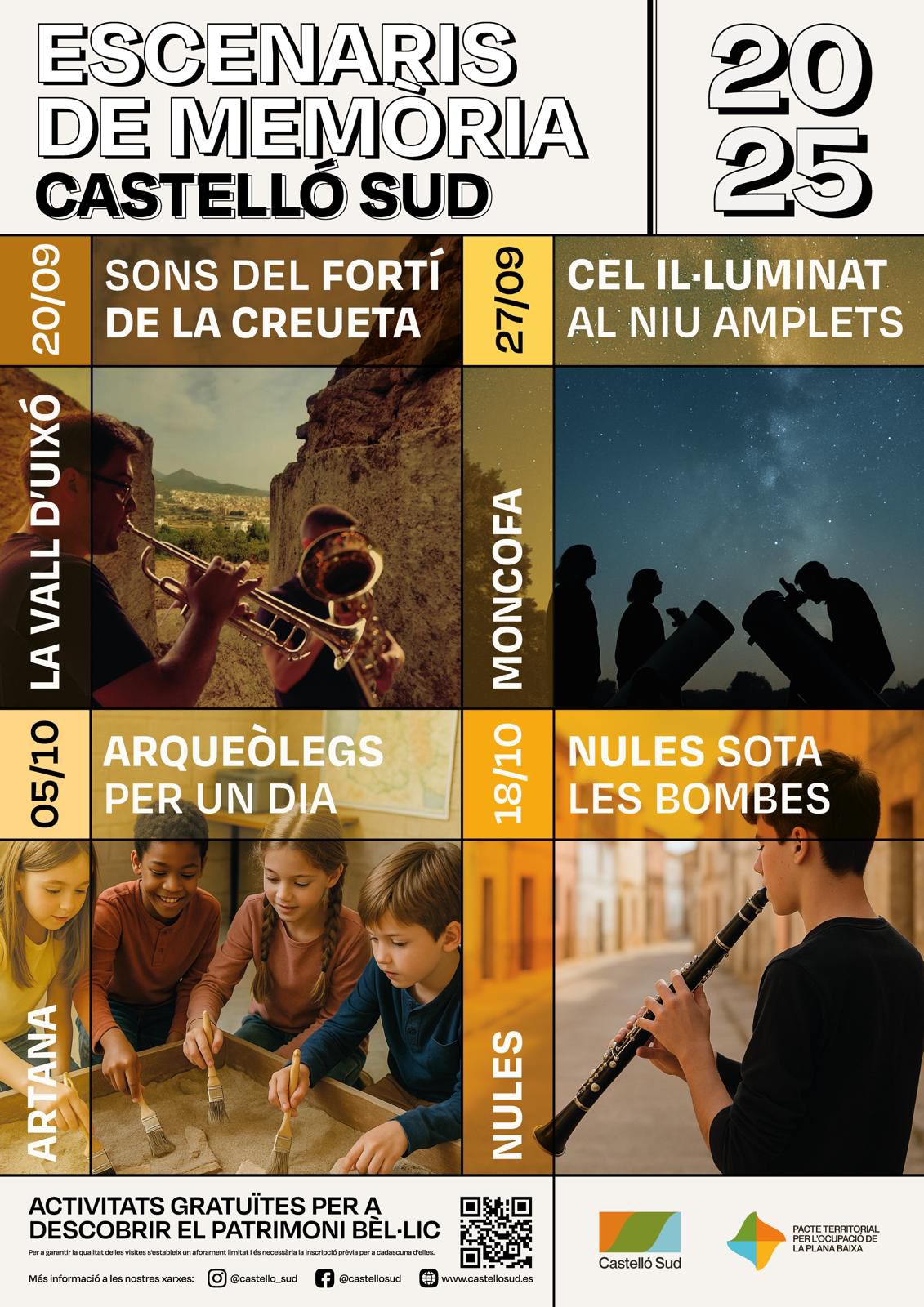 El Consorci llança el programa “Escenaris de Memòria Castelló Sud”. Quatre activitats gratuïtes al setembre i octubre per apropar el patrimoni bèl·lic a la ciutadania. Llegir més…ACÍ |
