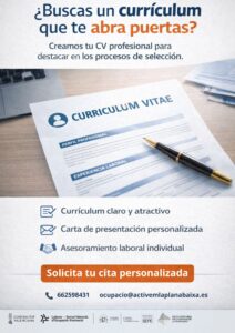 El Consorcio de la Plana Baixa impulsa en 2026 servicios itinerantes para mejorar la empleabilidad en los municipios. Las acciones acercan orientación laboral, alfabetización digital y apoyo en trámites electrónicos a la ciudadanía, reforzando la calidad del empleo y la igualdad de oportunidades en el territorio. Leer más…AQUI |